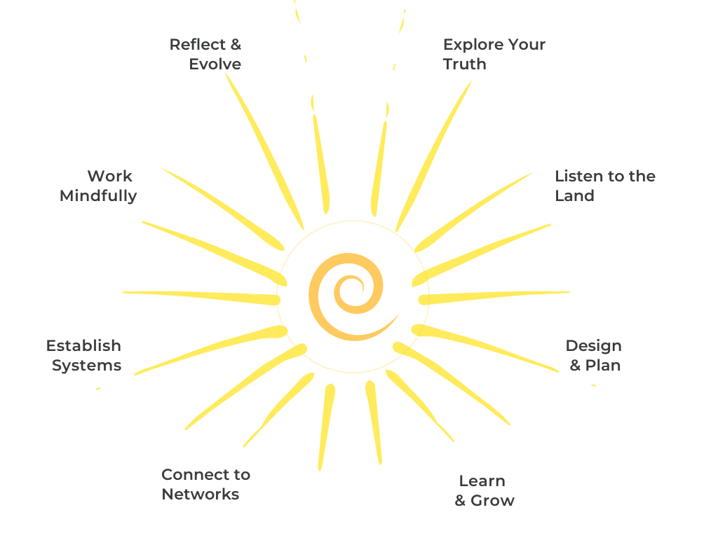 These are huge questions, and it can be hard to find your answers. We use a holistic process to help you discern how you want to partner with the land and your communities in the short term and for decades to come. This becomes the “north star” that guides our process together and grounds you throughout your life and work.